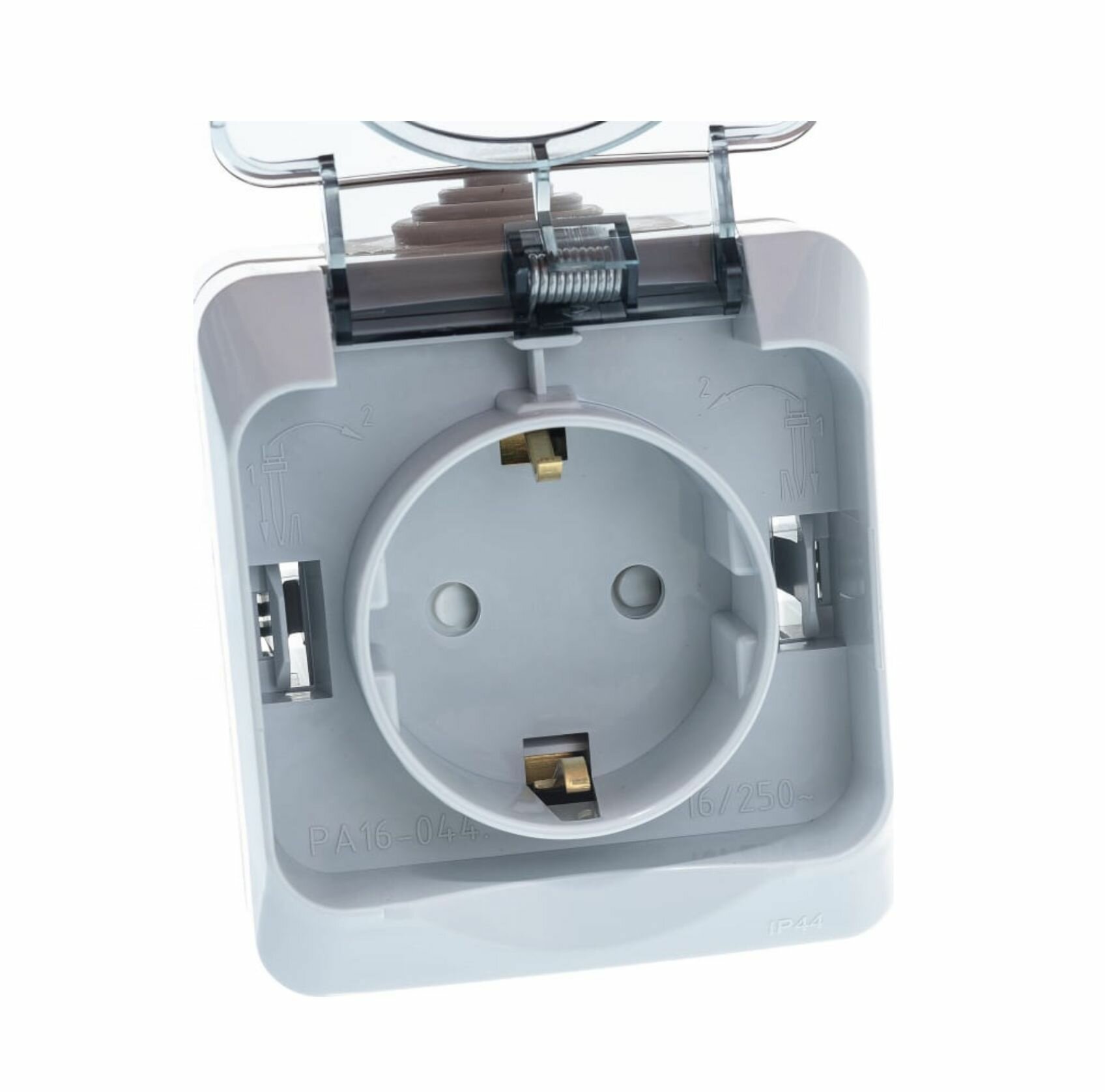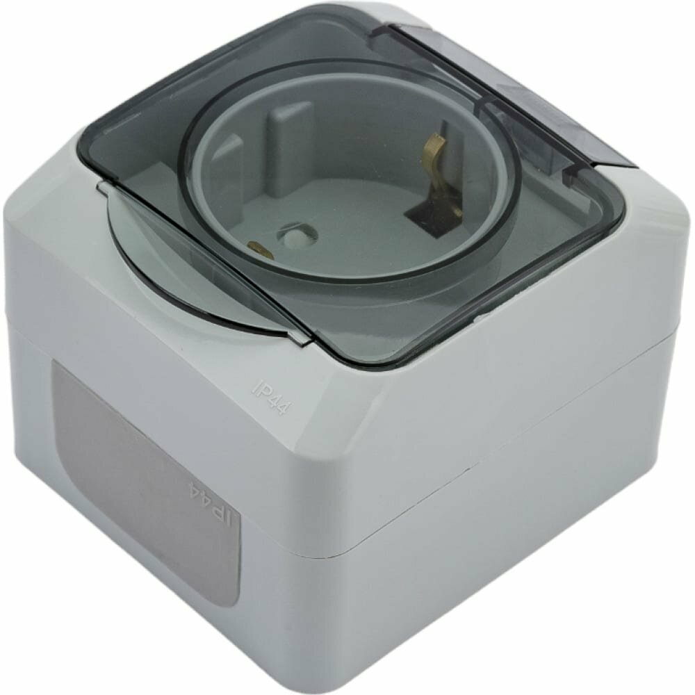 Розетка SCHNEIDER ELECTRIC этюд, с заземлением, с крышкой, со шторками, IP44, Серый, PA16-044C