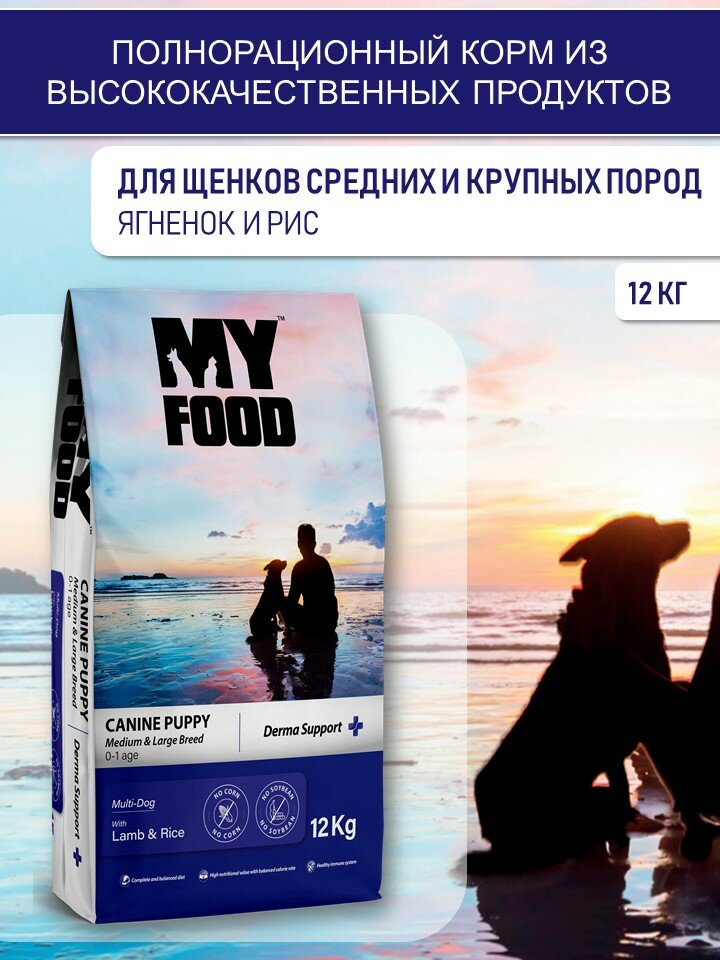 Myfood корм для щенков средних и крупных пород, с ягненком и рисом 12 кг