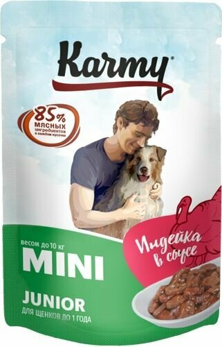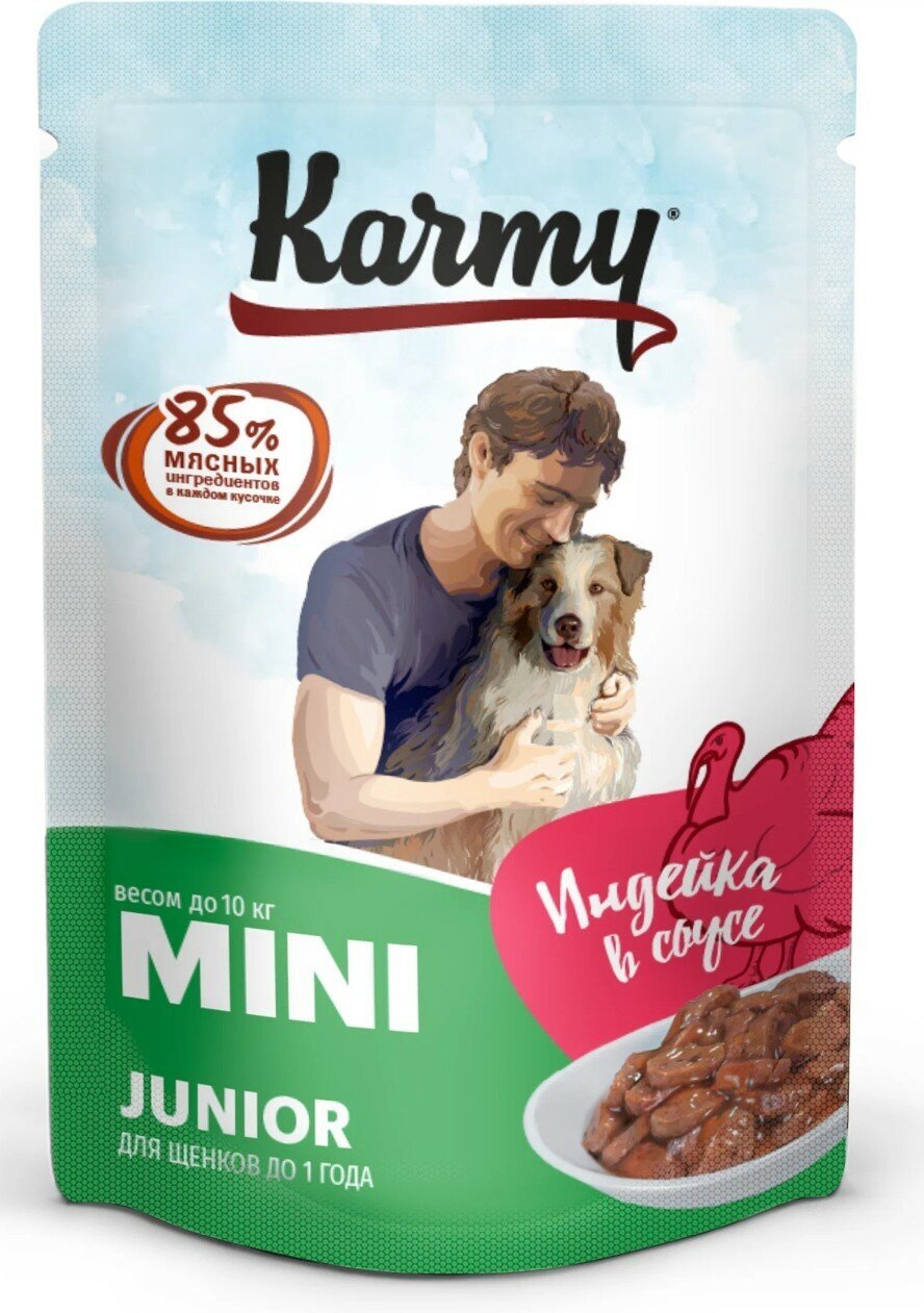 Karmy Mini Junior влажный корм для щенков мелких пород, индейка в соусе, в паучах - 80 г х 12 шт