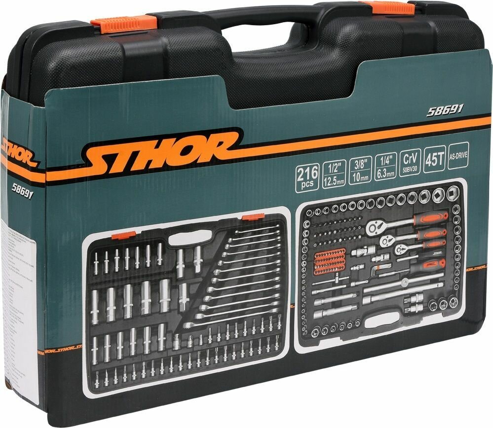 STHOR 58691 Набор инструментов 216 пр: 1/4, 3/8, 1/2, 6 гр