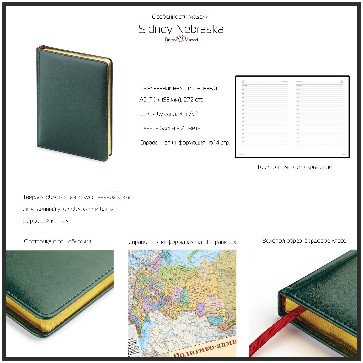 Ежедневник недатированный А6 110х155 Sidney Nebraska чер 272с 3-49 3-496/02 интересное: