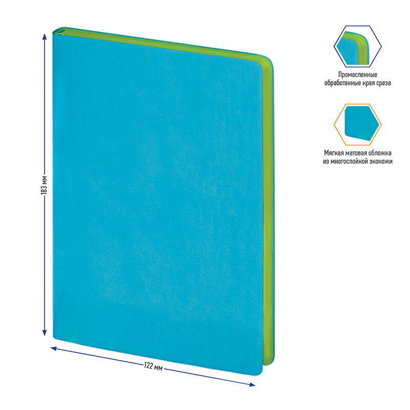 Ежедневник недатированный, В6, 136л., кожзам, Berlingo "Fuze", цветной срез, бирюзовый