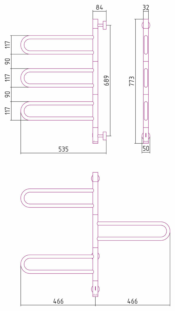 Полотенцесушитель электрический Сунержа, ЭПС СУНЕРЖА “парео 4.0-3С“ 773х535 (Белый)