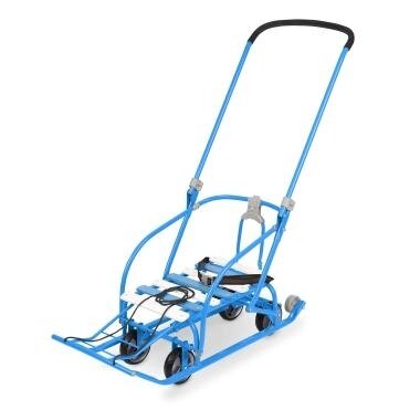 | Минусы: | хлипкие, на колесах высокая вероятность опрокинуться, неудобно переводить с колес на полозья |