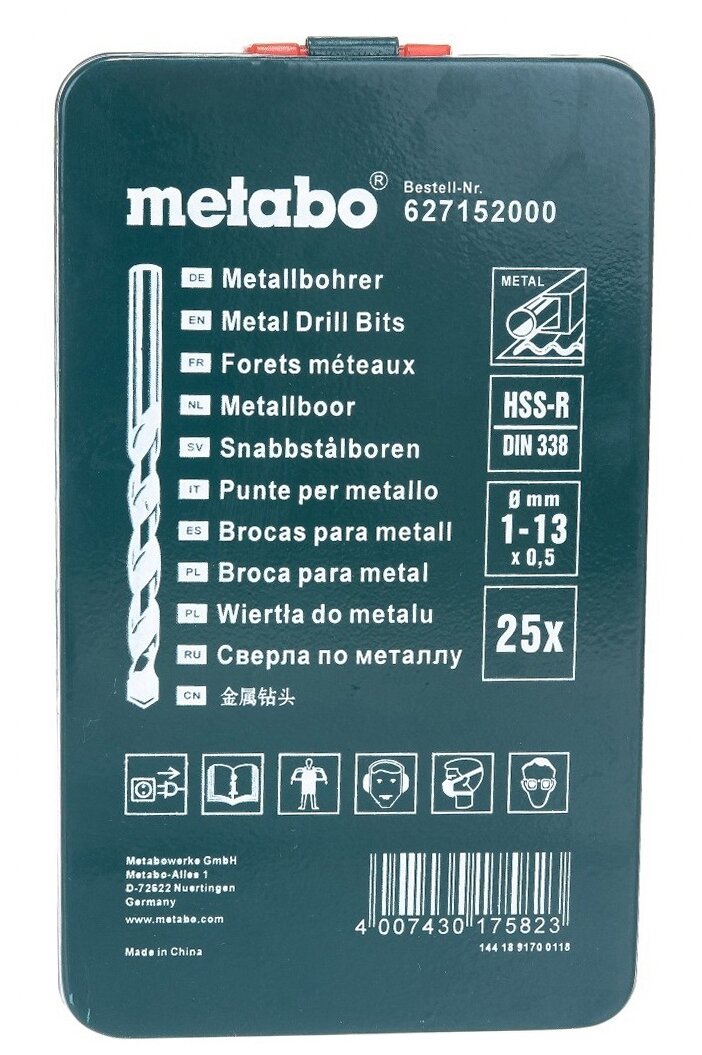 Metabo Набор Hss-r 25 свёрел 1-13мм в мет.коробке 627152000