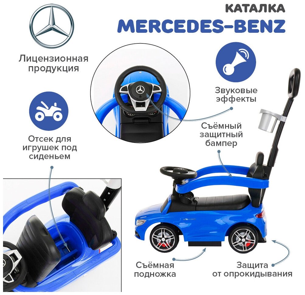 NINGBO PRINCE Каталка Mercedes-Benz (ручка, бампер, подставка для ног) Blue/Синий 2710199827 интересное: