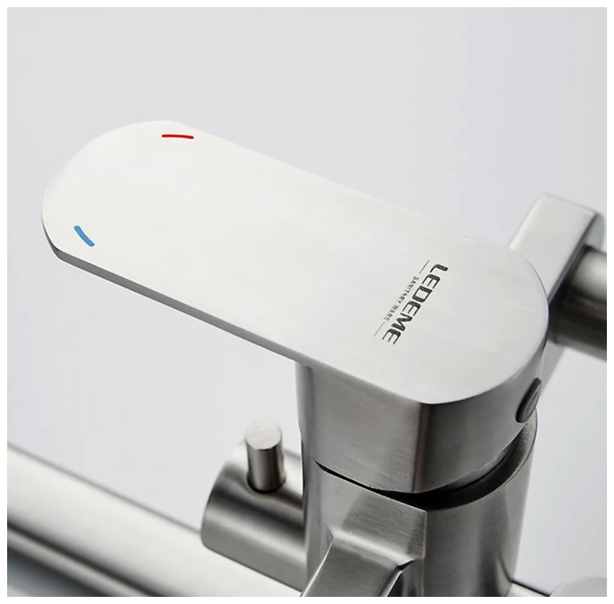 Однорычажный смеситель для ванны с душевой лейкой и длинным поворотным изливом 35 см Ledeme L72216 сатин, нержавеющая сталь интересное:
