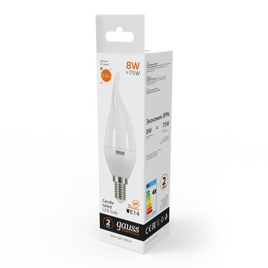 Светодиодная лампа Gauss LED Elementary Candle Tailed 8W E14 3000K интересное: