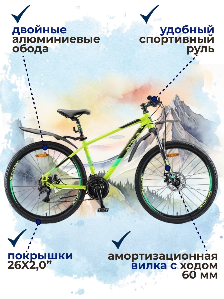Горный велосипед Stels Navigator 645 MD 26 V010, рама 18", Лайм интересное: