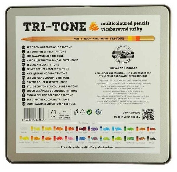 Ниже Вы можете прочитать отзывы на Карандаши многоцветные Koh-I-Noor "TRI-TONE 3444", 24шт., металл.коробка, ознакомится с подробными характеристиками, посмотреть интересные обзоры и фотографии на Карандаши многоцветные Koh-I-Noor "TRI-TONE 3444", 24шт., металл.коробка.