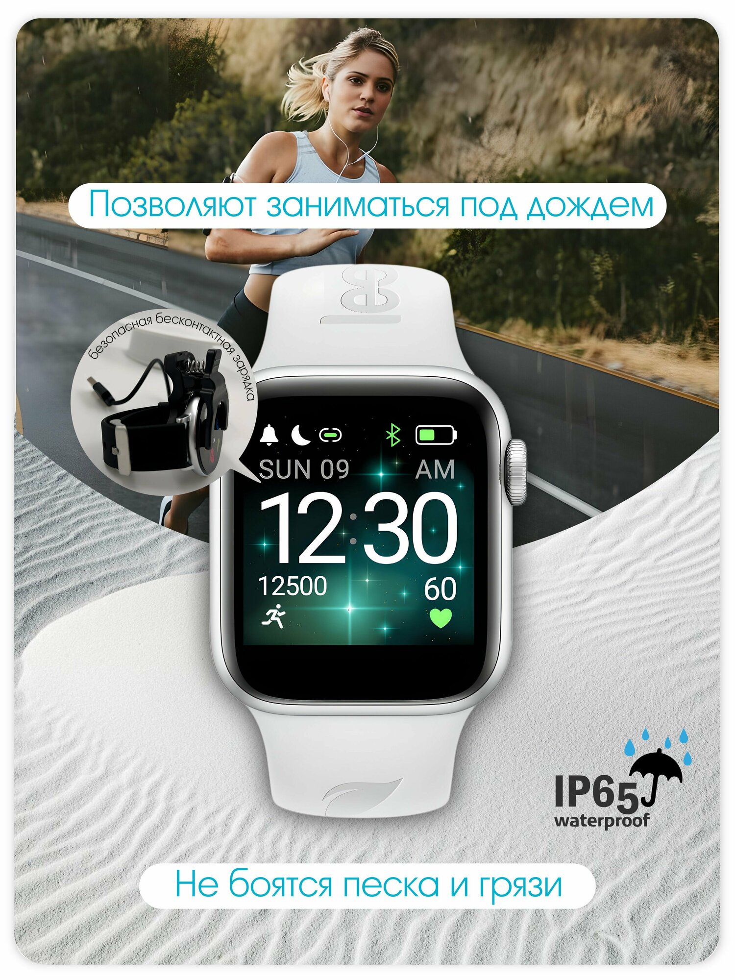 | Отзыв: | Часики очень похожи на эпл, сразу взгляд притягивают. Экран весь сенсорный, довольно крупный, очень удобно сообщения читать. Менюшка интуитивная. Все нужные счетчики есть: калории, шагомер и прочее. Заморочилась и разобралась с фазами сна - мне понравилось. Заряд держат пять дней - не меньше. Можно подобрать индивидуальную заставку. |