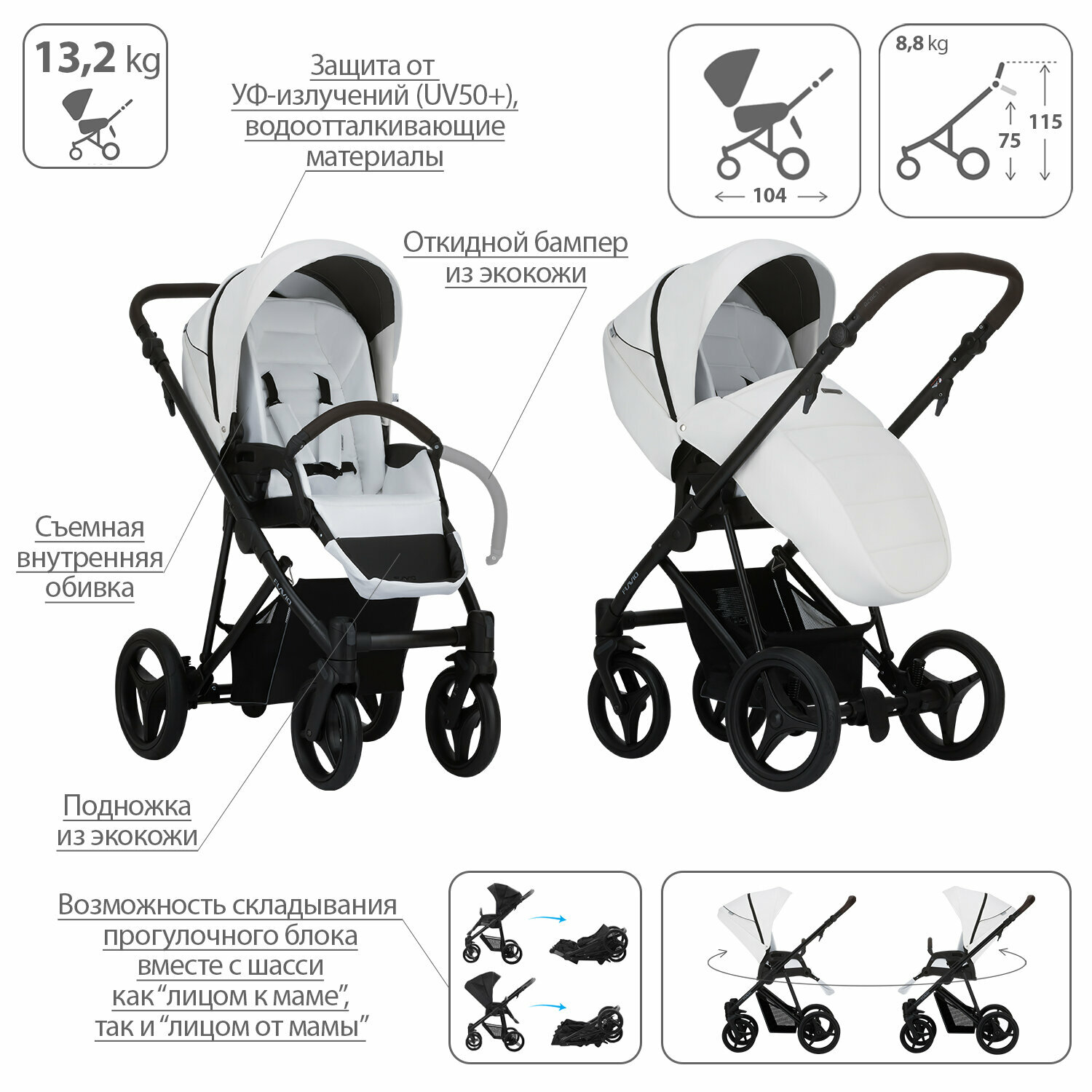 | Капюшон | капюшон опускается до бампера, материал с УФ-защитой |