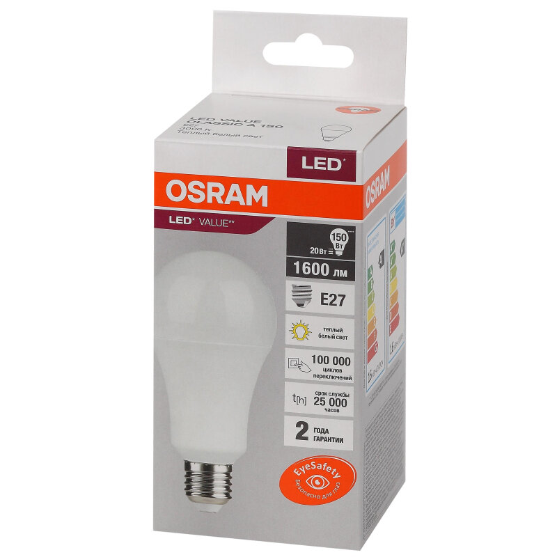 Лампа светодиодная OSRAM LED Value A, 1600лм, 20Вт (замена 150Вт), 3000К