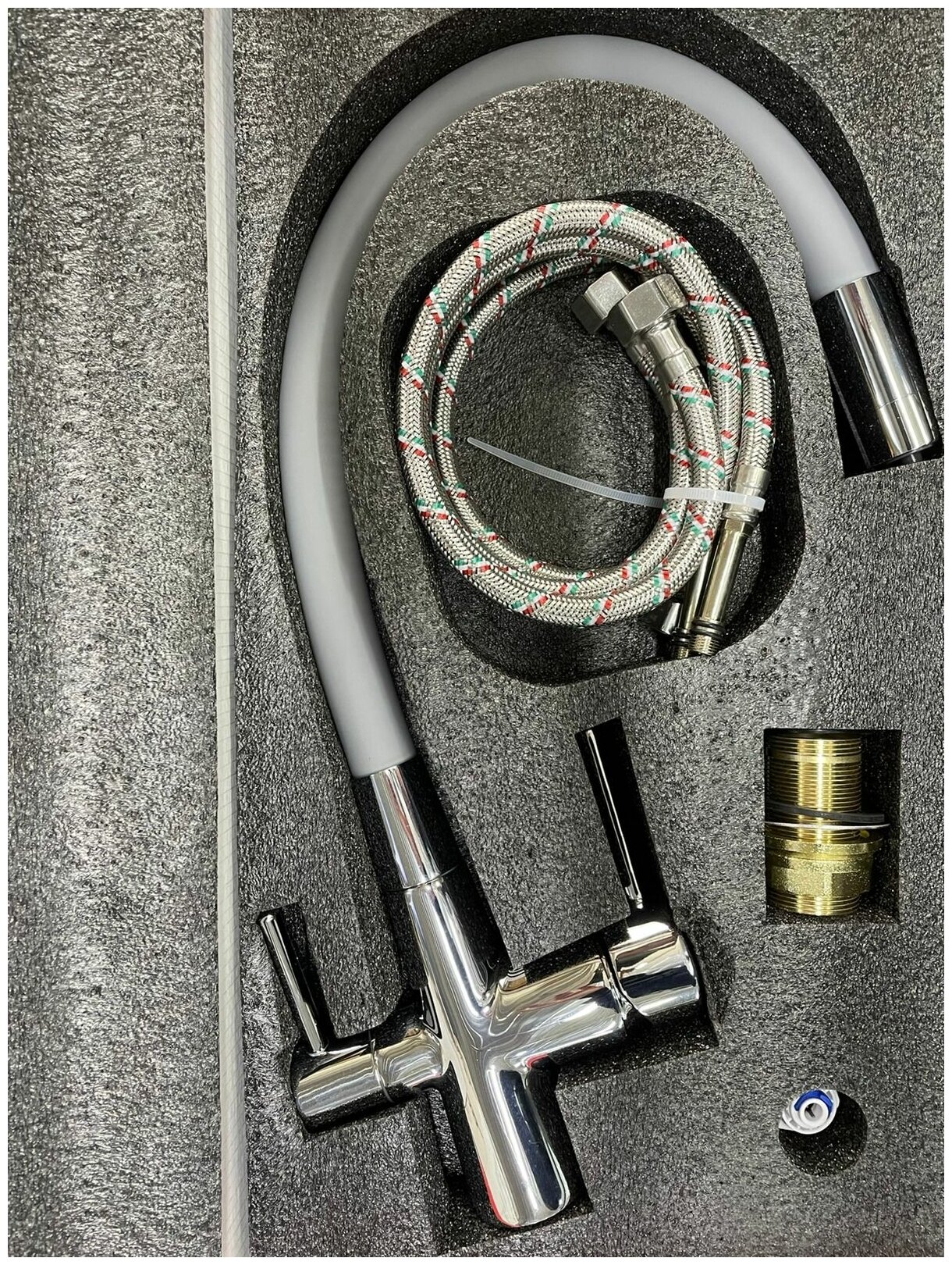 Смеситель для кухни с подключением фильтра и гибким изливом