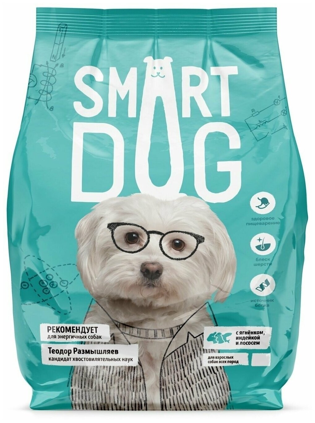 Корм Smart Dog для собак, с ягнёнком, лососем, индейкой, 18 кг