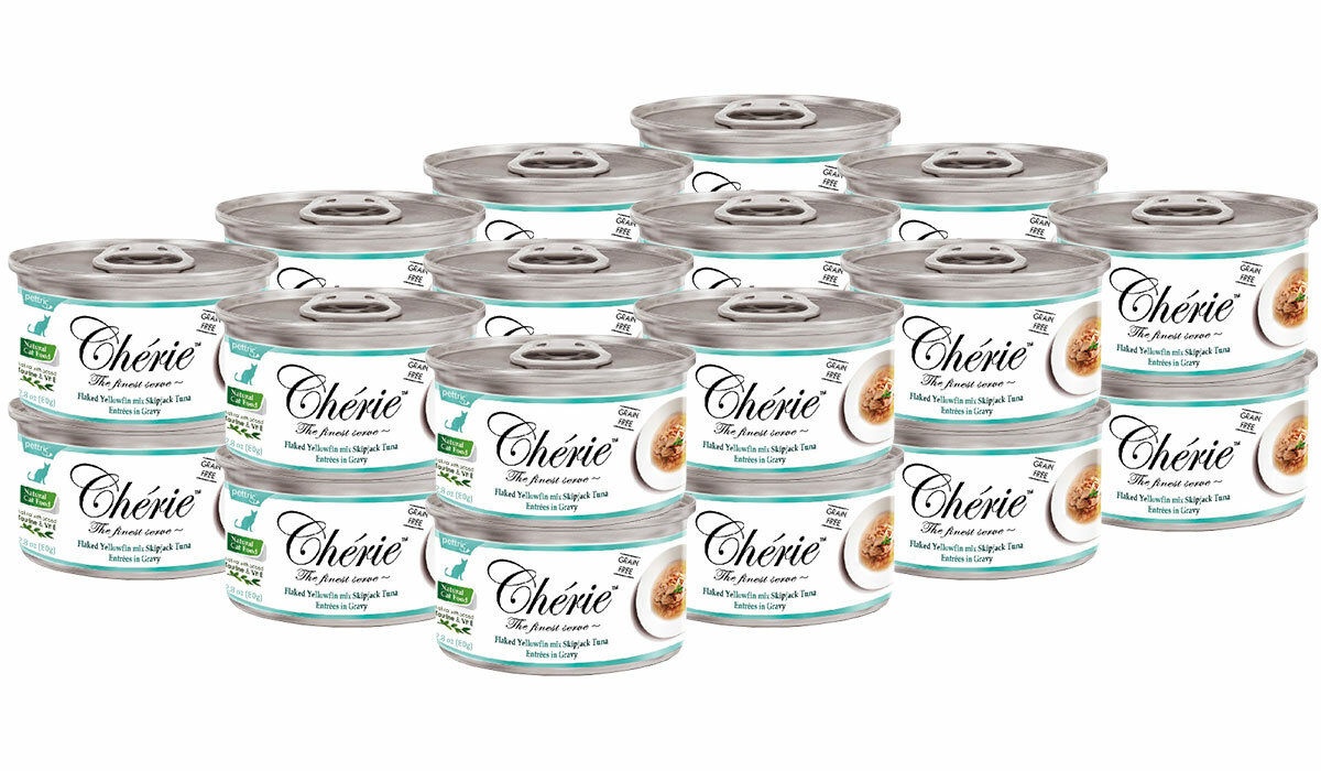 Влажный корм для кошек Pettric Cherie беззерновой, микс для взрослых кошек из желтоперого и полосатого тунца 24 шт. х 80 г (кусочки в соусе)