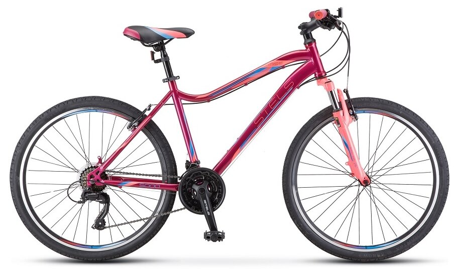 Велосипед STELS Miss-5000 V K010 (2022), горный (взрослый), рама 18", колеса 26", вишневый/розовый, 17.1кг [lu089247] интересное: