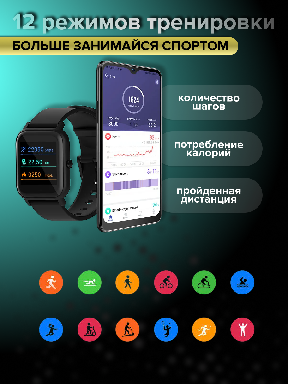 | Мониторинг | калорий, пульса, сна, уровня кислорода в крови, физической активности |