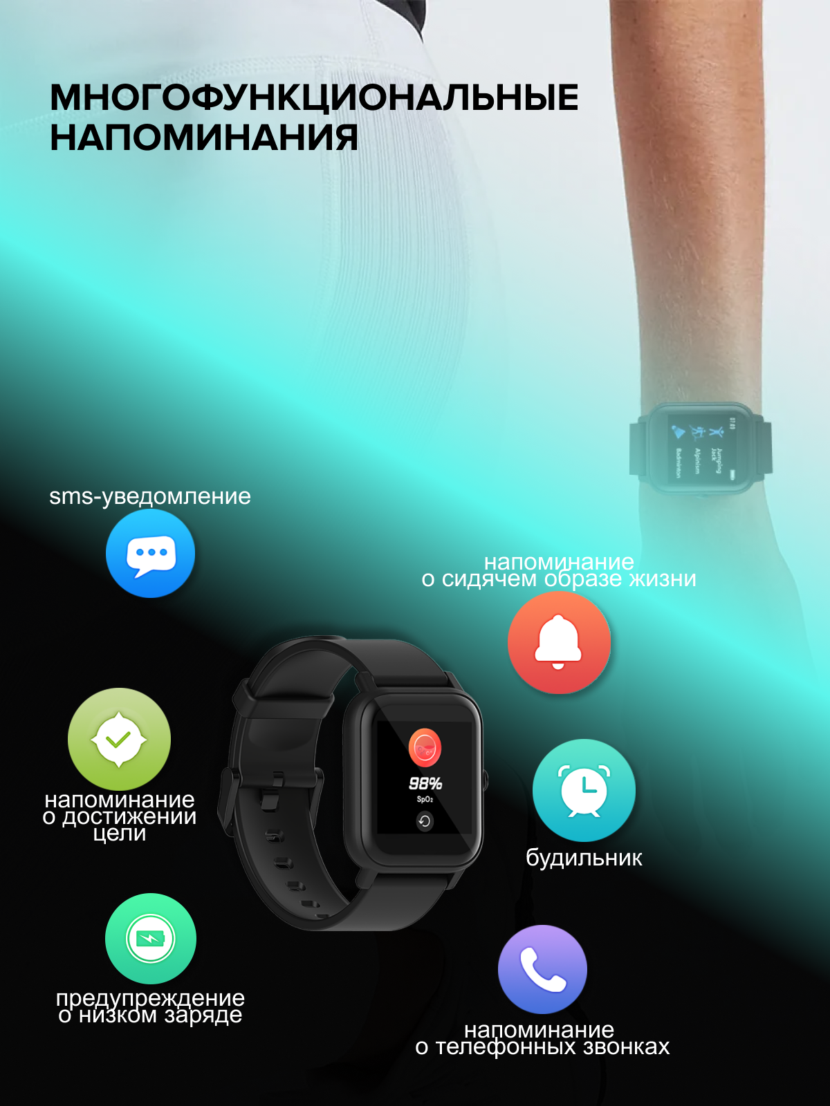 | Дополнительные функции | будильник / вибрация / секундомер / таймер / шагомер |
