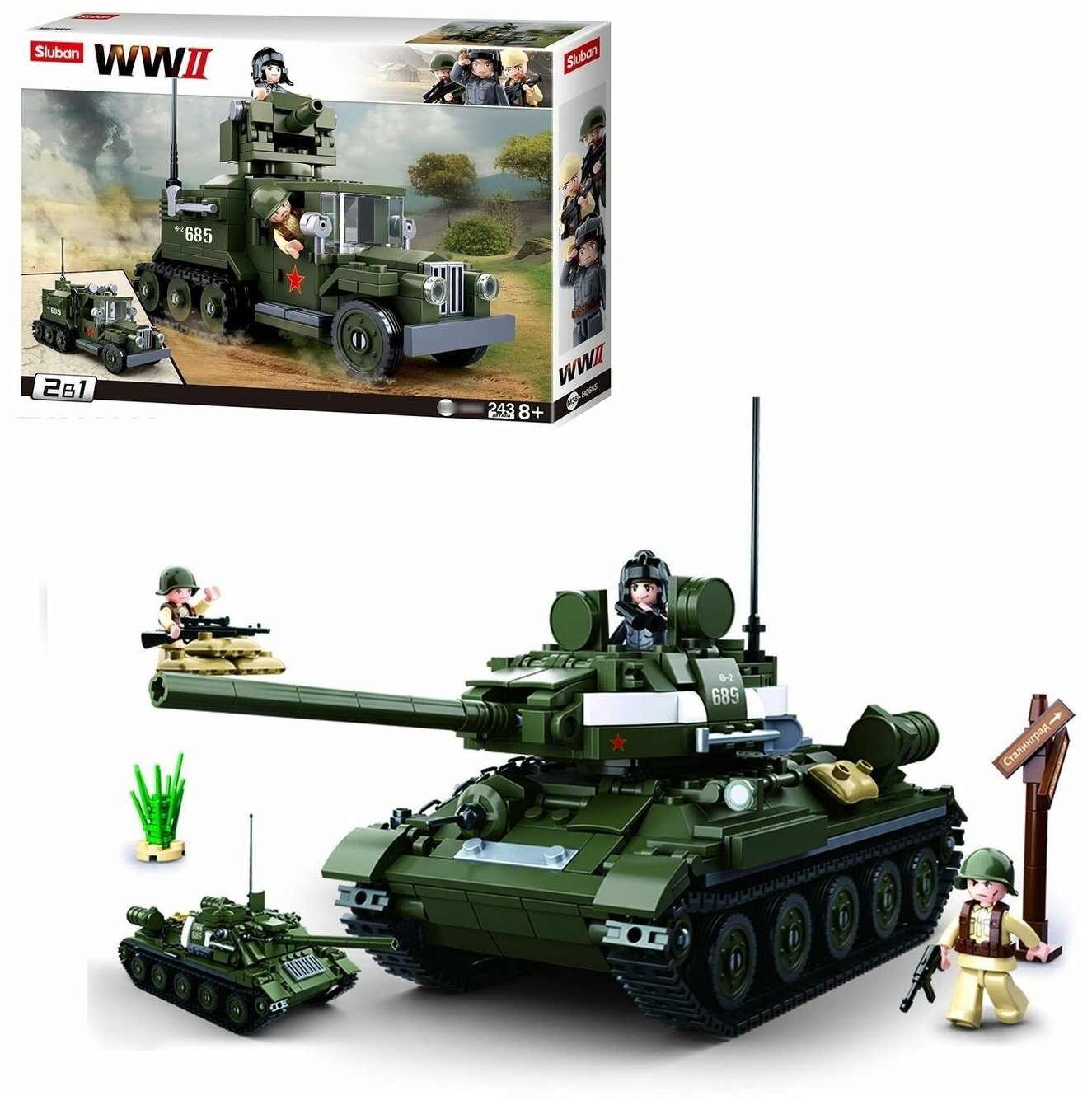 Конструктор Sluban серия "Вторая Мировая война", Танк, Т34 или 85 модель, 687 деталей (M38-B0689)
