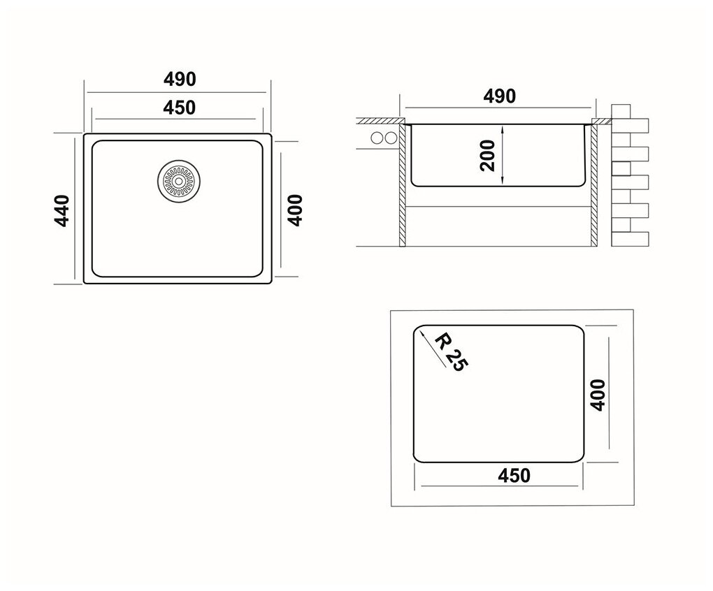 Мойка под столешницу Ukinox Loft 490х440 браширов. нерж.сталь 1мм, слив 3 1/2, LOB450.400 -GT10P