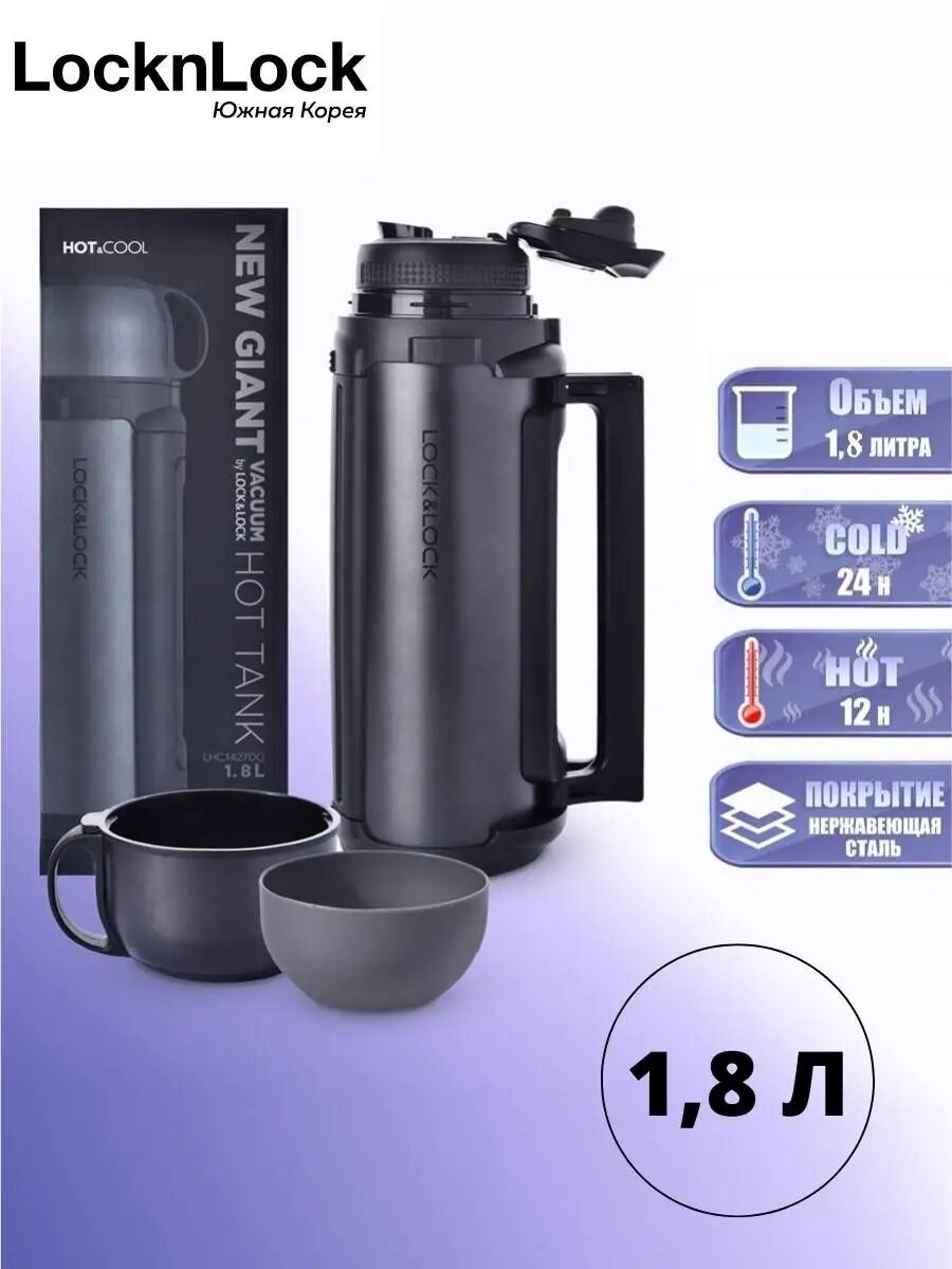 Термос "Lock&Lock" Hot&Cool , 1,5 л, черный