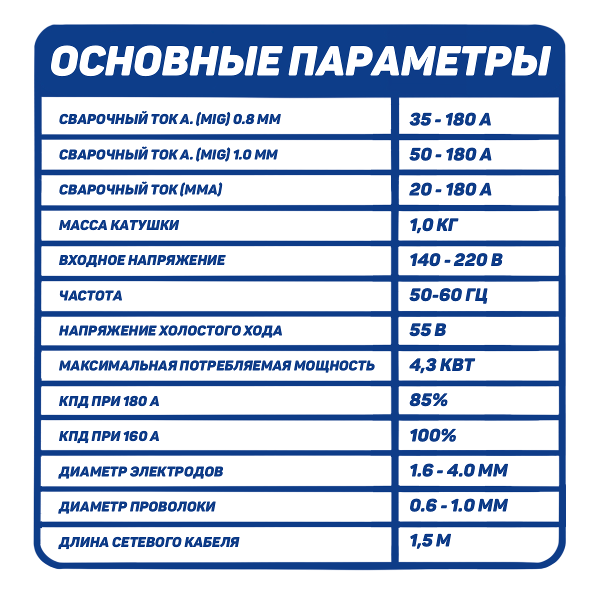 | Сварочный ток (MIG/MAG), max | 180 А |
