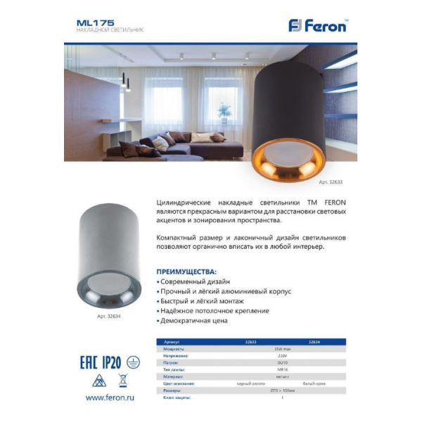 Накладной светильник Feron 32633