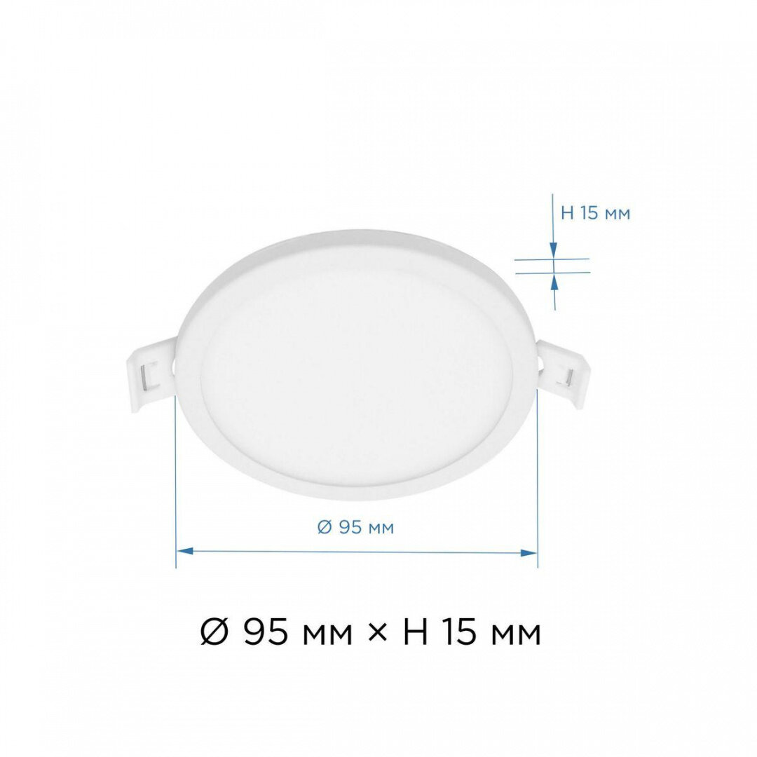 Светодиодный светильник-панель в форме круга / Врезная светодиодная круглая панель с изолированным драйвером / Встраиваемое LED освещение для внутренних помещений / PF 0.5 / 7Вт / ТБ 2700К / 560Лм / IP40 / гарантия 1 год / 220В / 06-15 / 95 мм