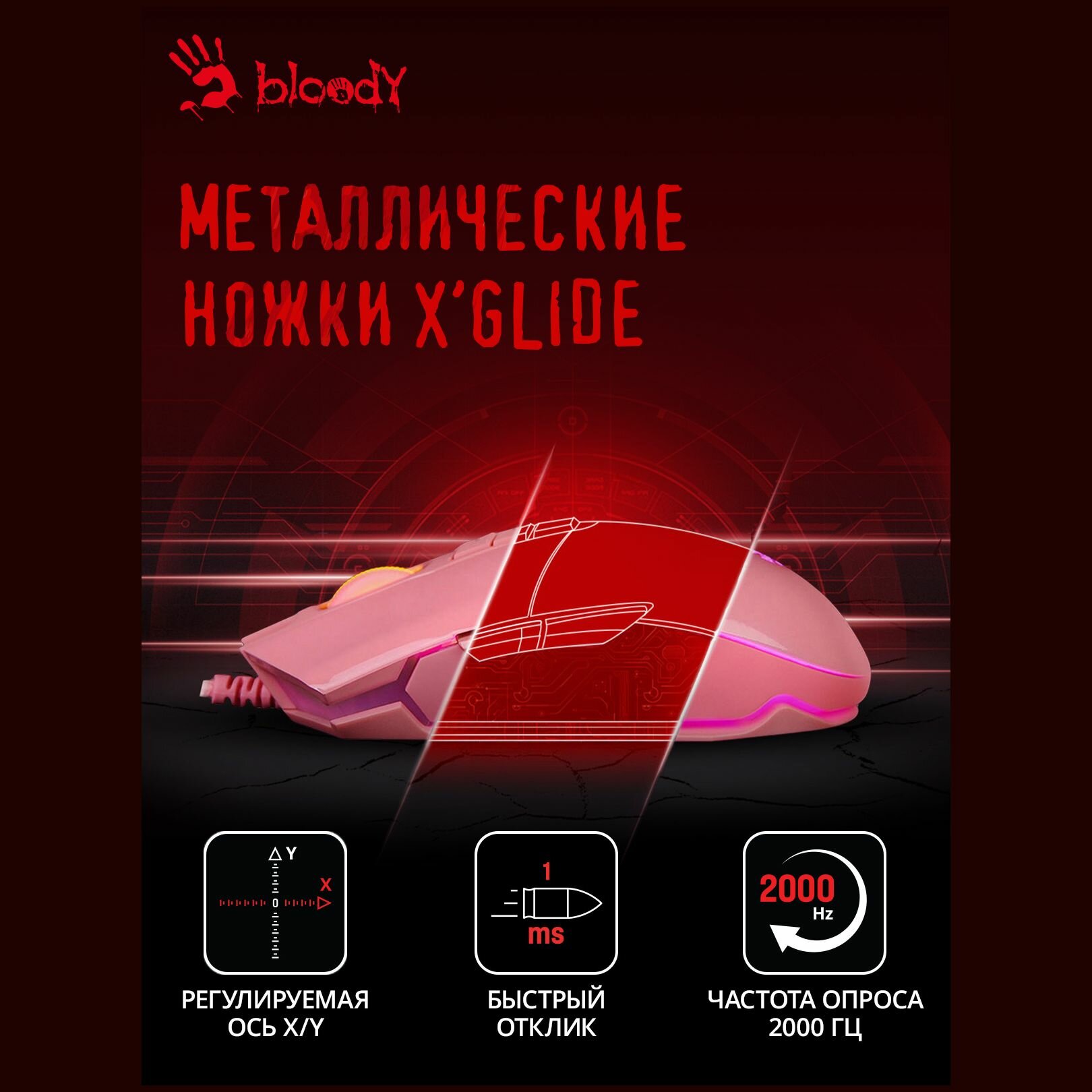Купить Мышь A4TECH Bloody P91s, игровая, оптическая, проводная, USB, розовый [p91s pink activated]