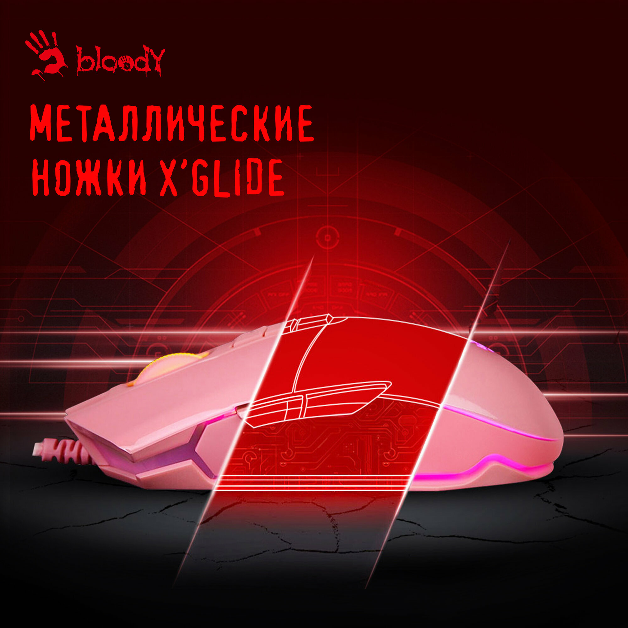 Мышь A4Tech Bloody P91s, розовый