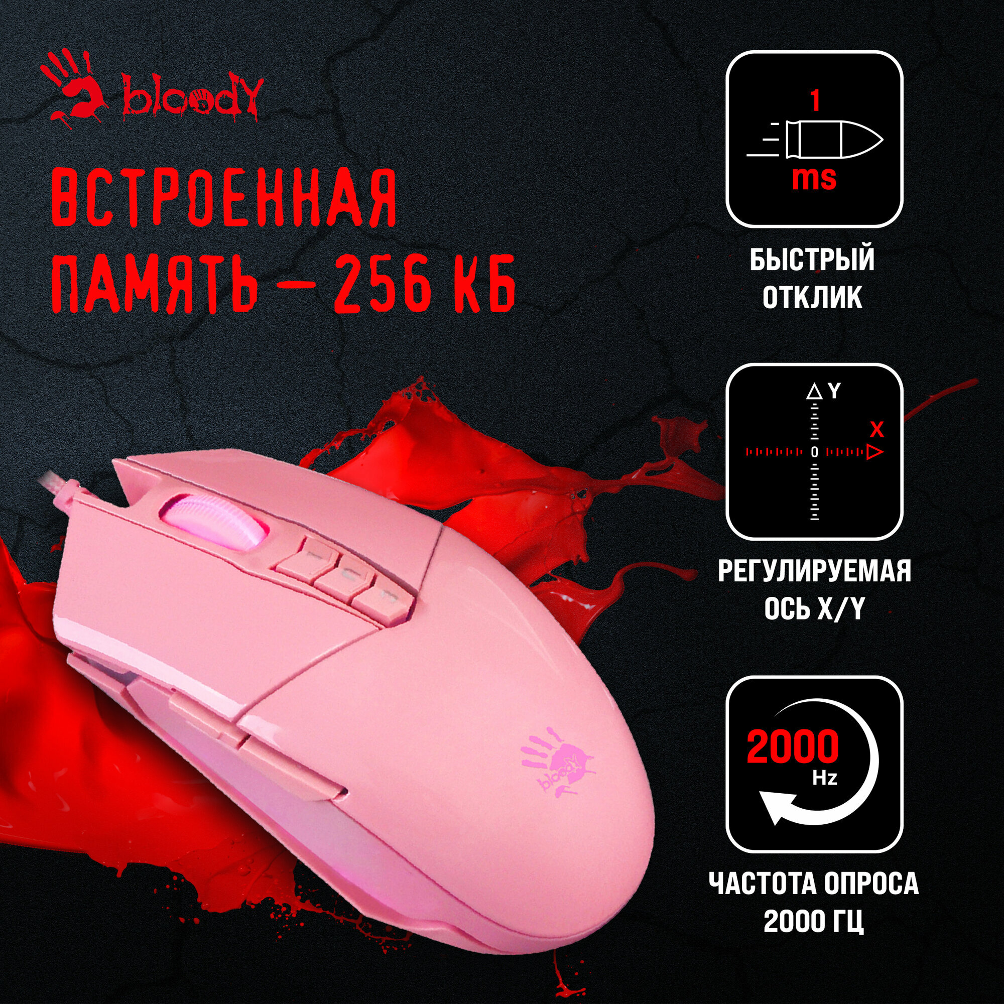 СохранитьМышь A4TECH Bloody P91s, игровая, оптическая, проводная, USB, розовый [p91s pink activated] интересное: