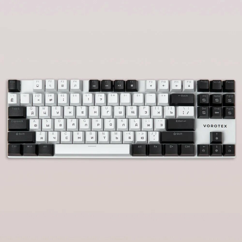 Клавиатура игровая проводная VOROTEX K87S Brown Switch, русская раскладка (Белый, чёрный)