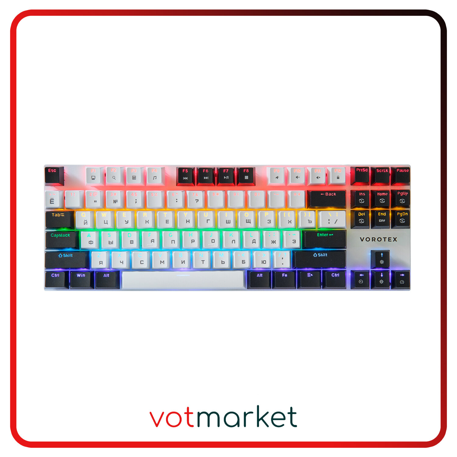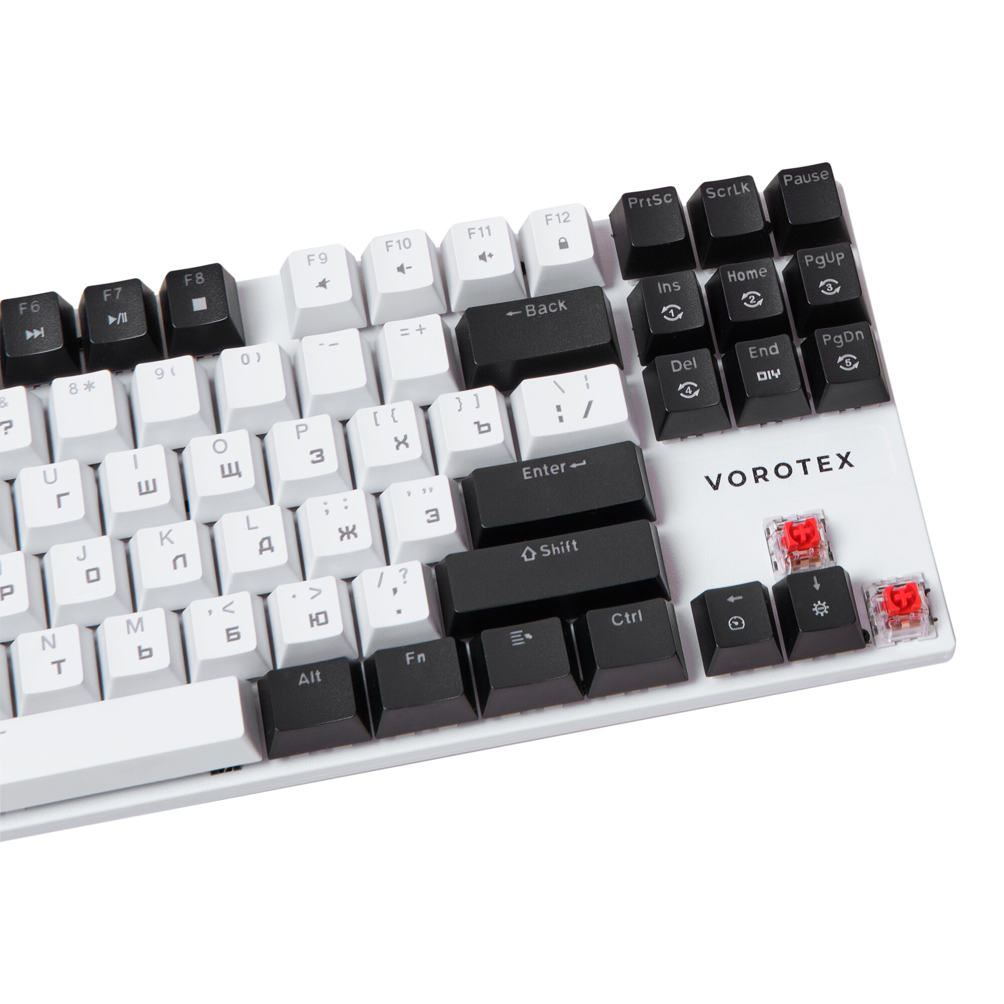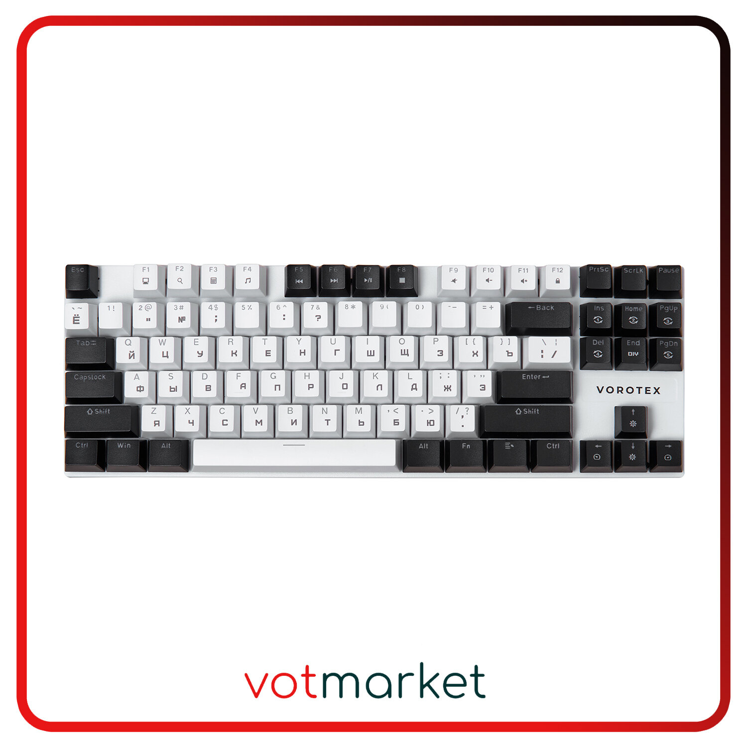 Игровая клавиатура VOROTEX K87S Red Switch, черный/белый, русская