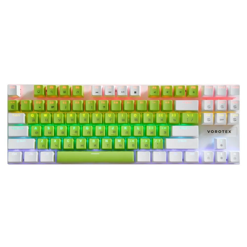 Клавиатура игровая проводная VOROTEX K87S Red Switch, русская раскладка (Зелёный, белый)