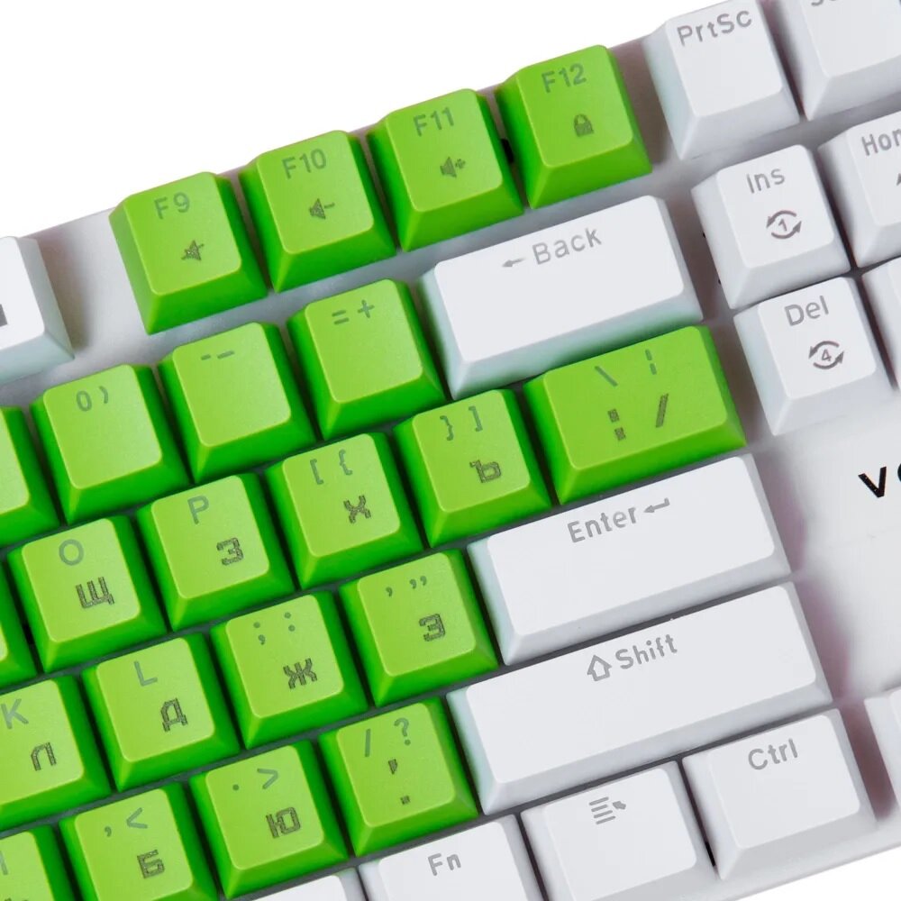 Игровая клавиатура VOROTEX K87S Blue Switch, белый/зеленый, русская