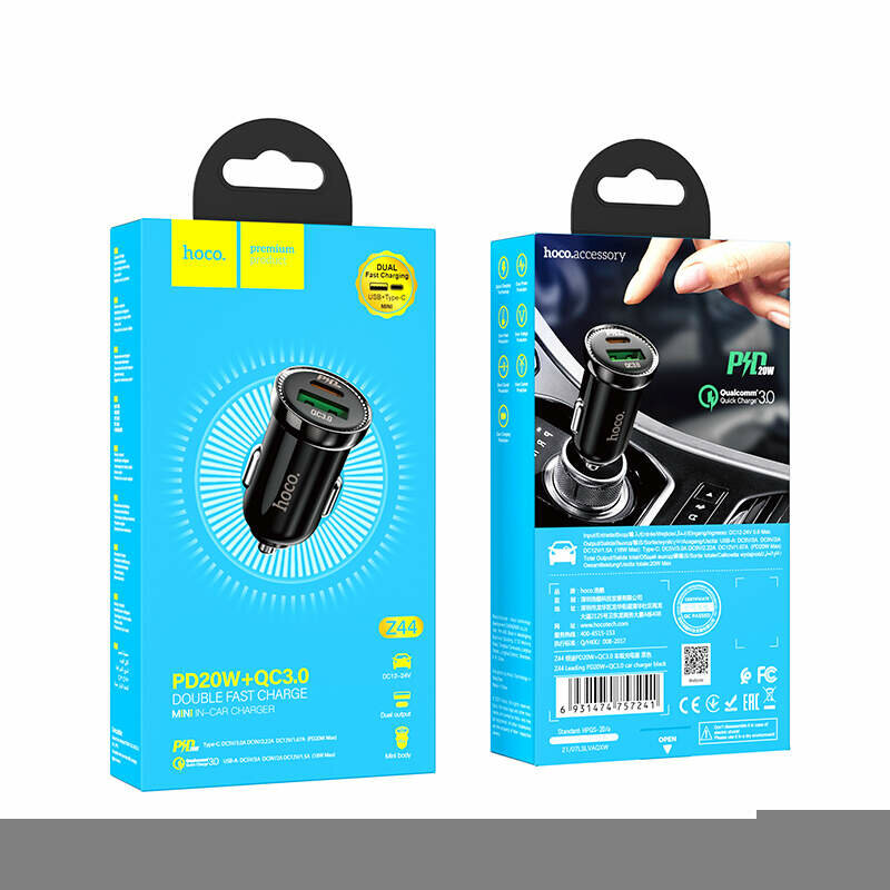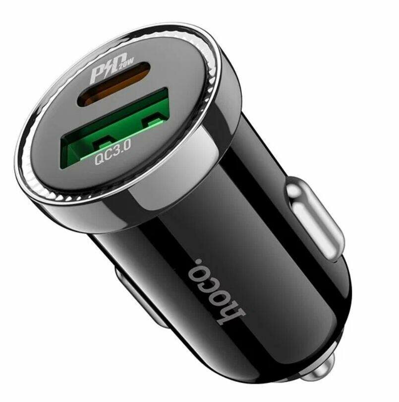 Автомобильное зарядное устройство HOCO Z44 Leading, 1xUSB + 1xUSB-C, 3A, 20W, черный