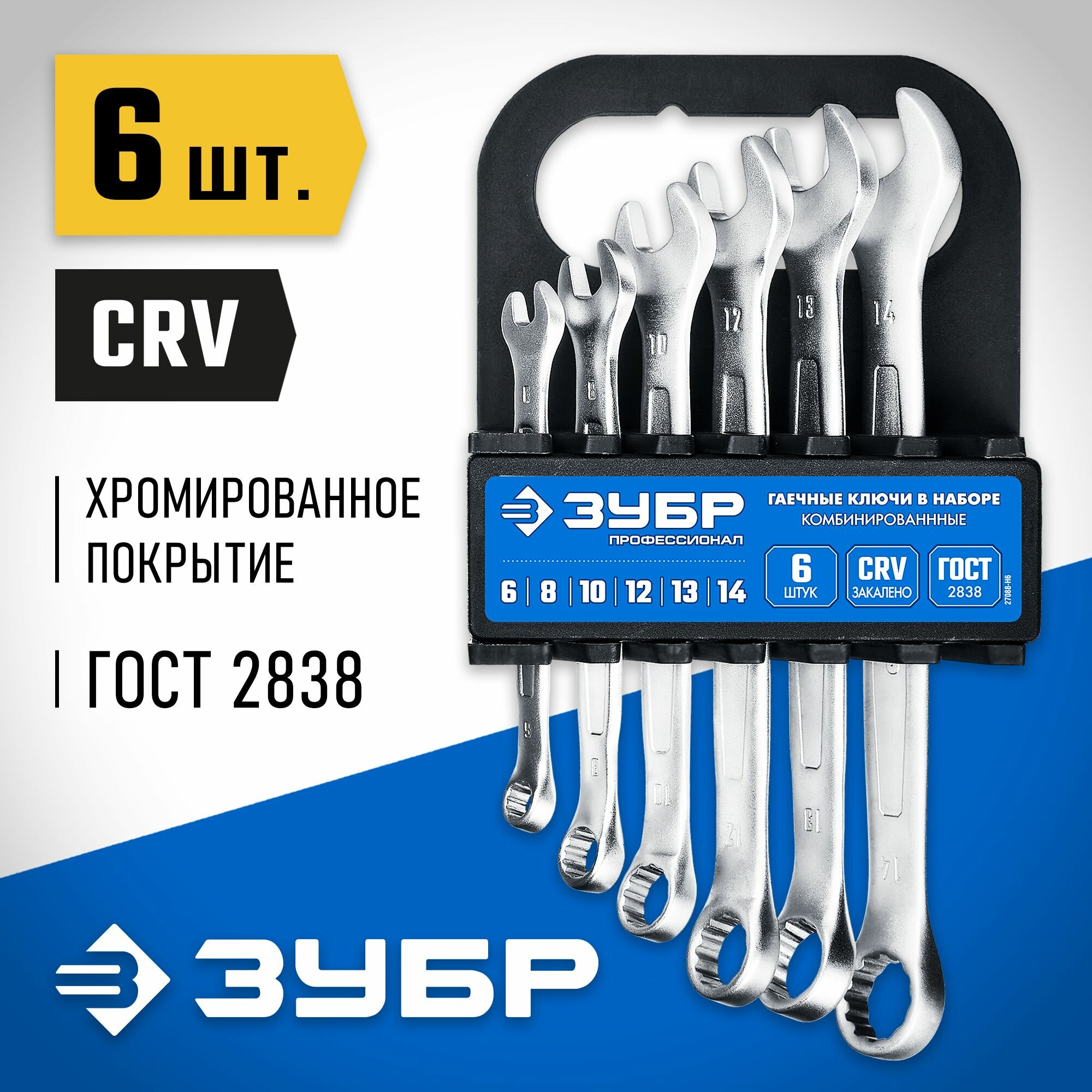 ЗУБР 6 шт, 6 - 14 мм, набор комбинированных гаечных ключей, Профессионал (27088-H6)