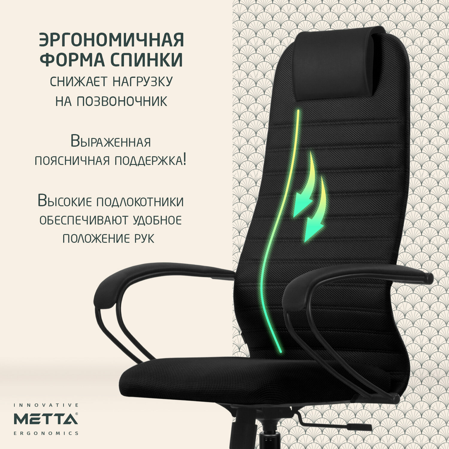 Кресло руководителя Метта SU-BP-10 PL, ткань-сетка черная №20, топ-ган (100/001, 130/001)