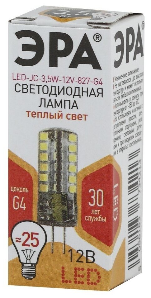 ЭРА LED JC-3,5W-12V-827-G4 (диод, капсула, 3,5Вт, тепл, G4)