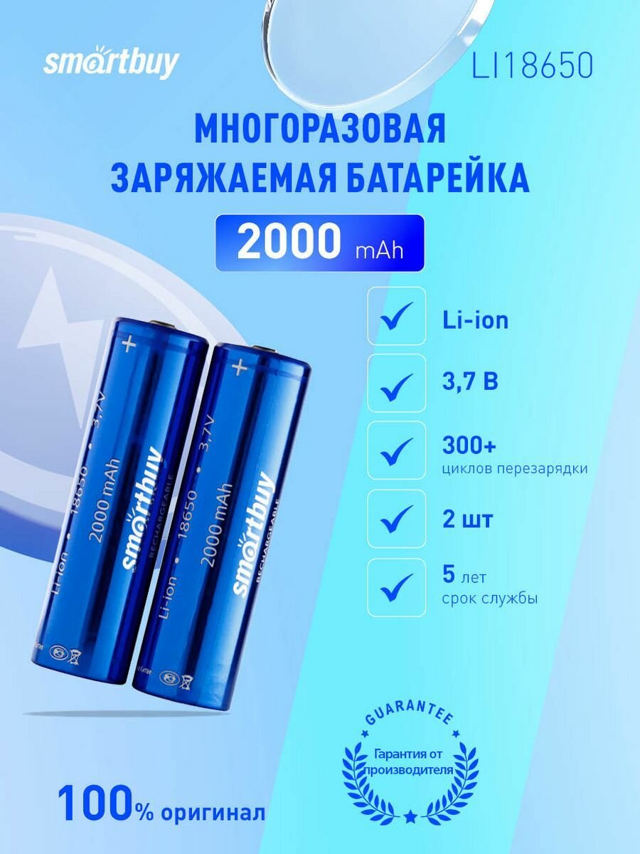 Аккумулятор LI18650 Smartbuy 2000 mAh упаковка 2шт (SBBR-18650-2S2000)