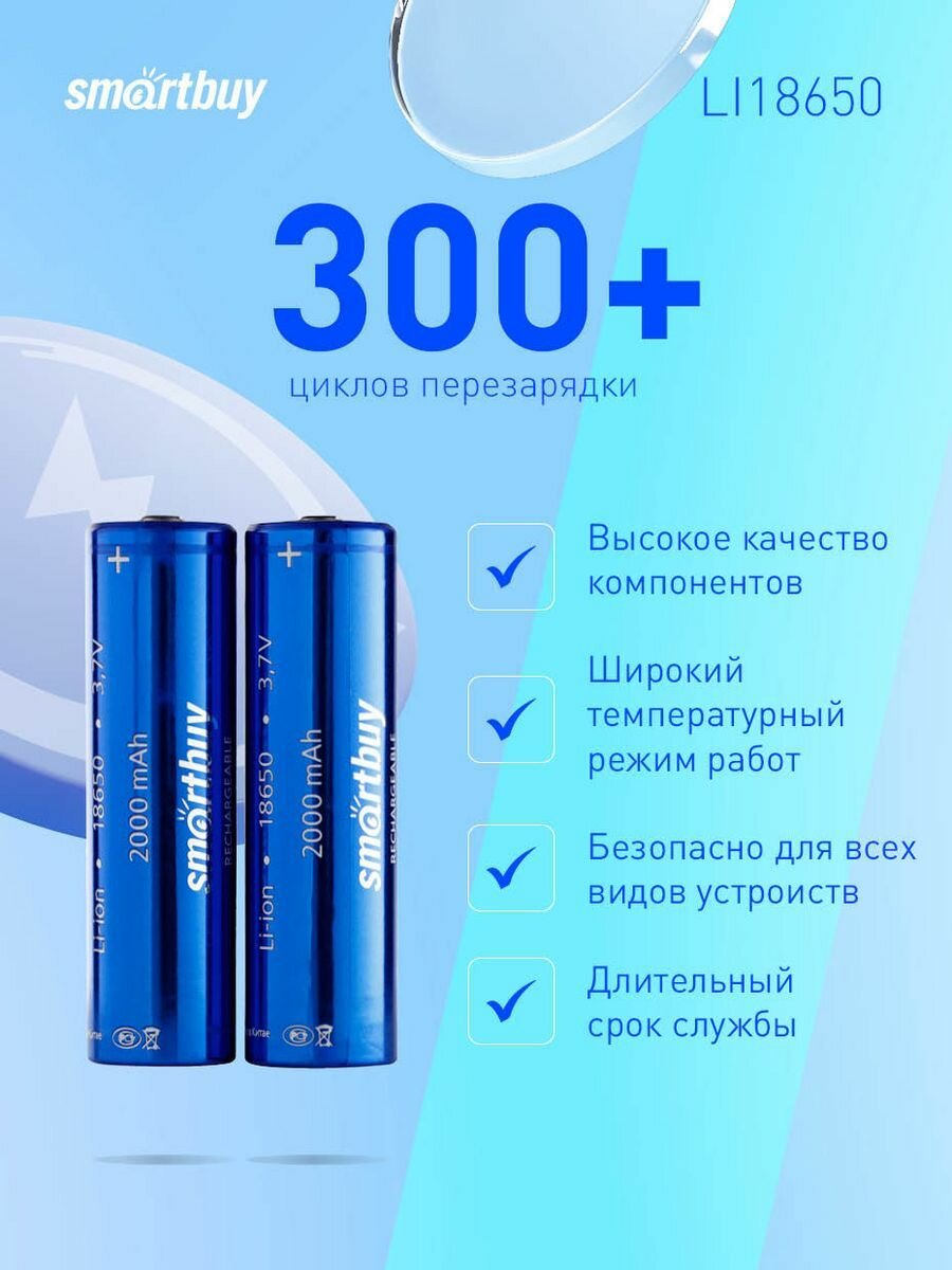 Аккумуляторы SMARTBUY (SBBR-18650-2S2000) - 2000 mAh 2 шт.