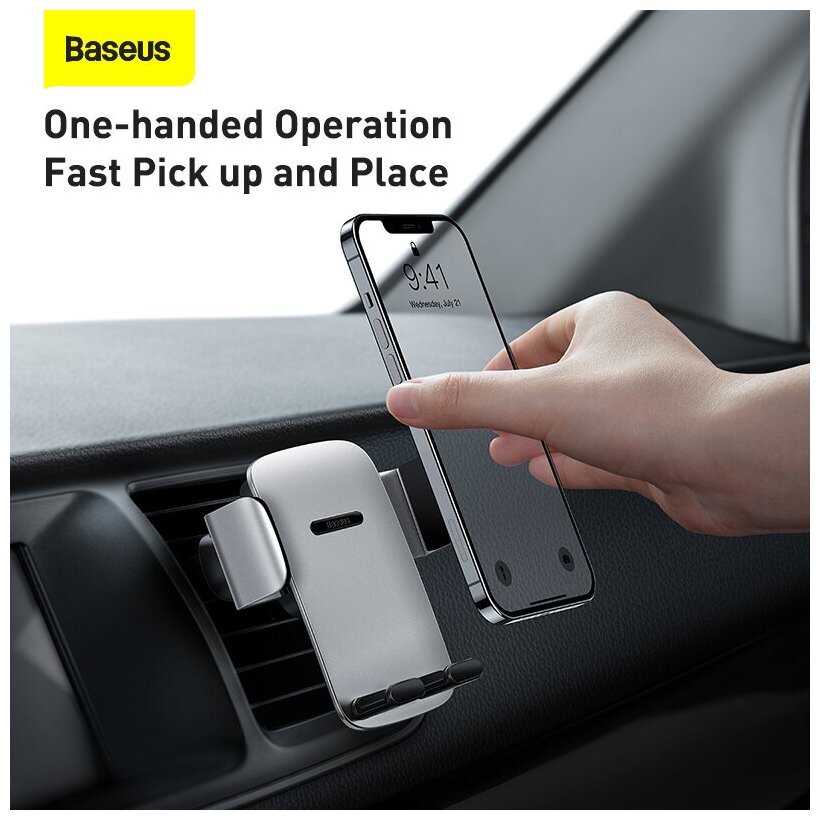 Автомобильный держатель для телефона BASEUS Easy Control Pro Clamp, серебряный, на воздуховод интересное: