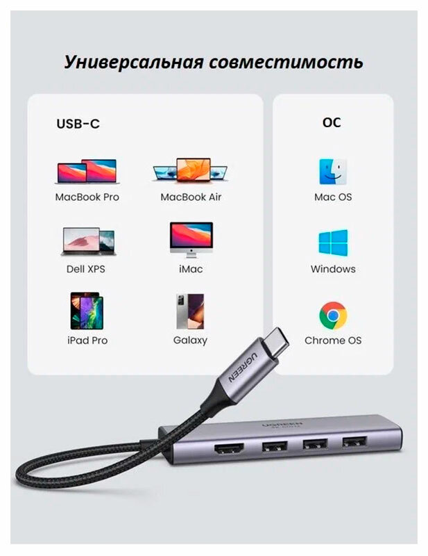 | Особенности | USB Type-C, активный, кардридер, Поддержка разрешения 4K |