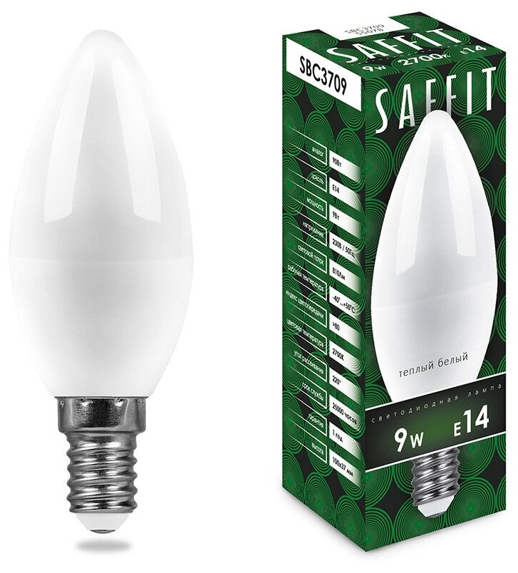 Лампа светодиодная SAFFIT SBC3709 Свеча E14 9W 2700K 55078 (упаковка 10 шт) интересное: