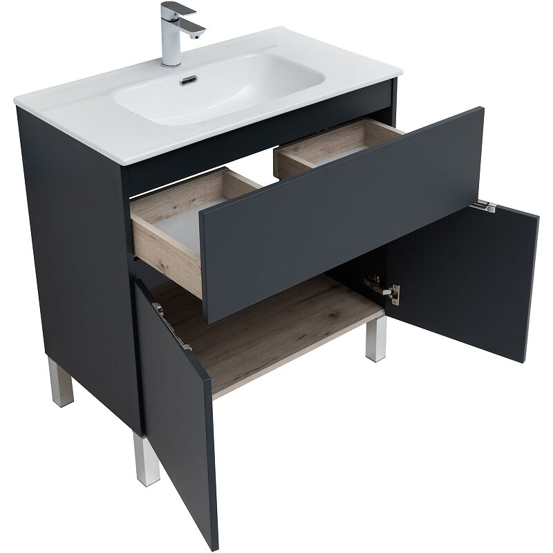 Тумба Aquanet Алвита New 80 1 ящик, 2 дверцы, антрацит