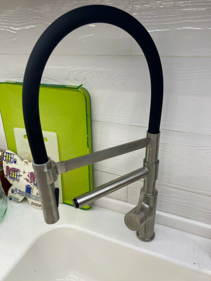 СПЕЦИАЛИСТ СКАЗАЛ, ЧТО ЭТО ПЕРВЫЙ СЛУЧАЙ ПО ДАННОЙ ДЕТАЛИ СМЕСИТЕЛЯ. Многофункциональный кран. И фильтр подключить можно, и основная лейка переключается на душ. Так же легко снимать шланг с магнитного крепления, но есть одно но... О чём собственно в недостатках... |