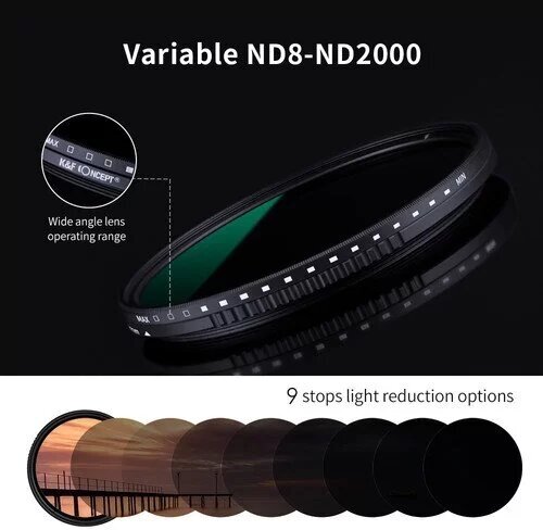 Купить Фильтр K&F 82 мм с переменной величиной ND8-ND2000
