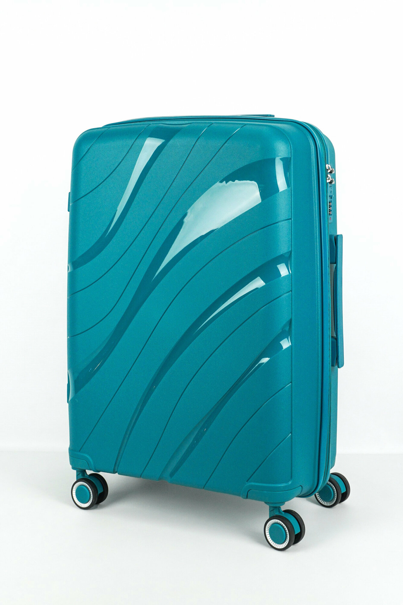 Чемодан Sweetbags большой из полипропилена с расширением на 4-х колесах с TSA замком (волны) бирюзовый XL