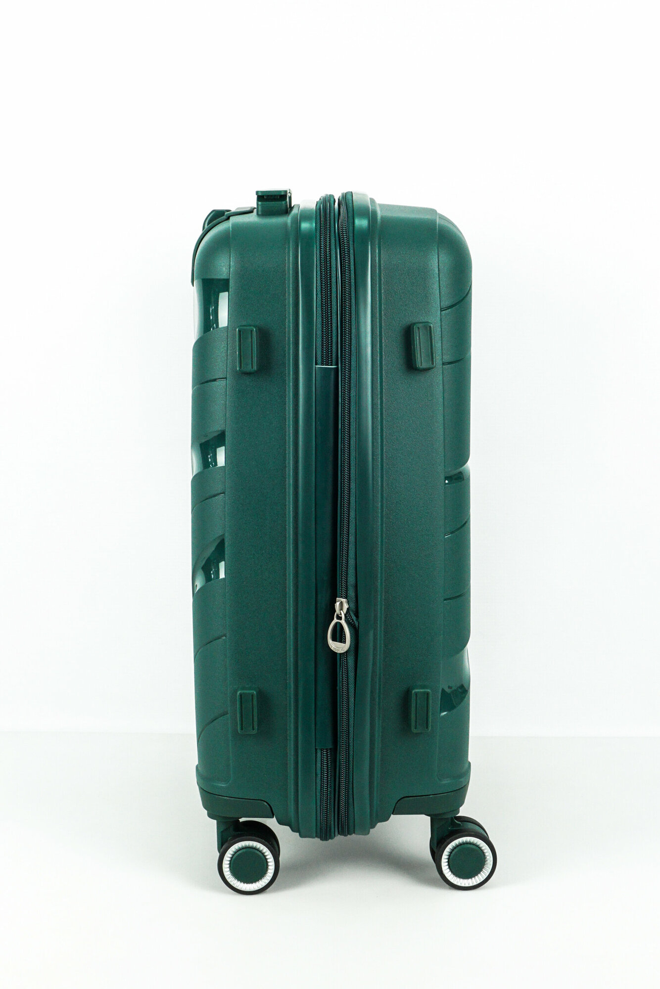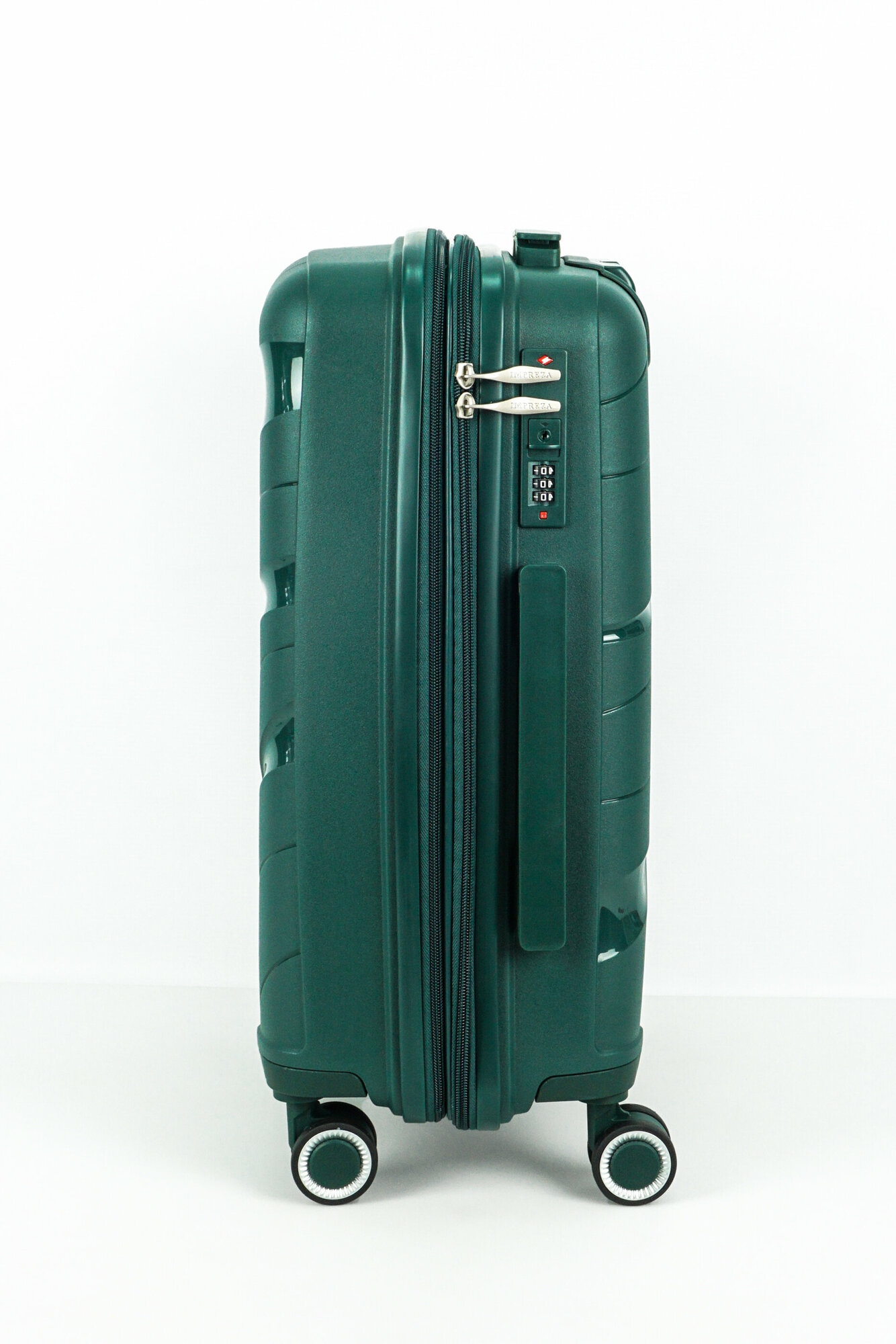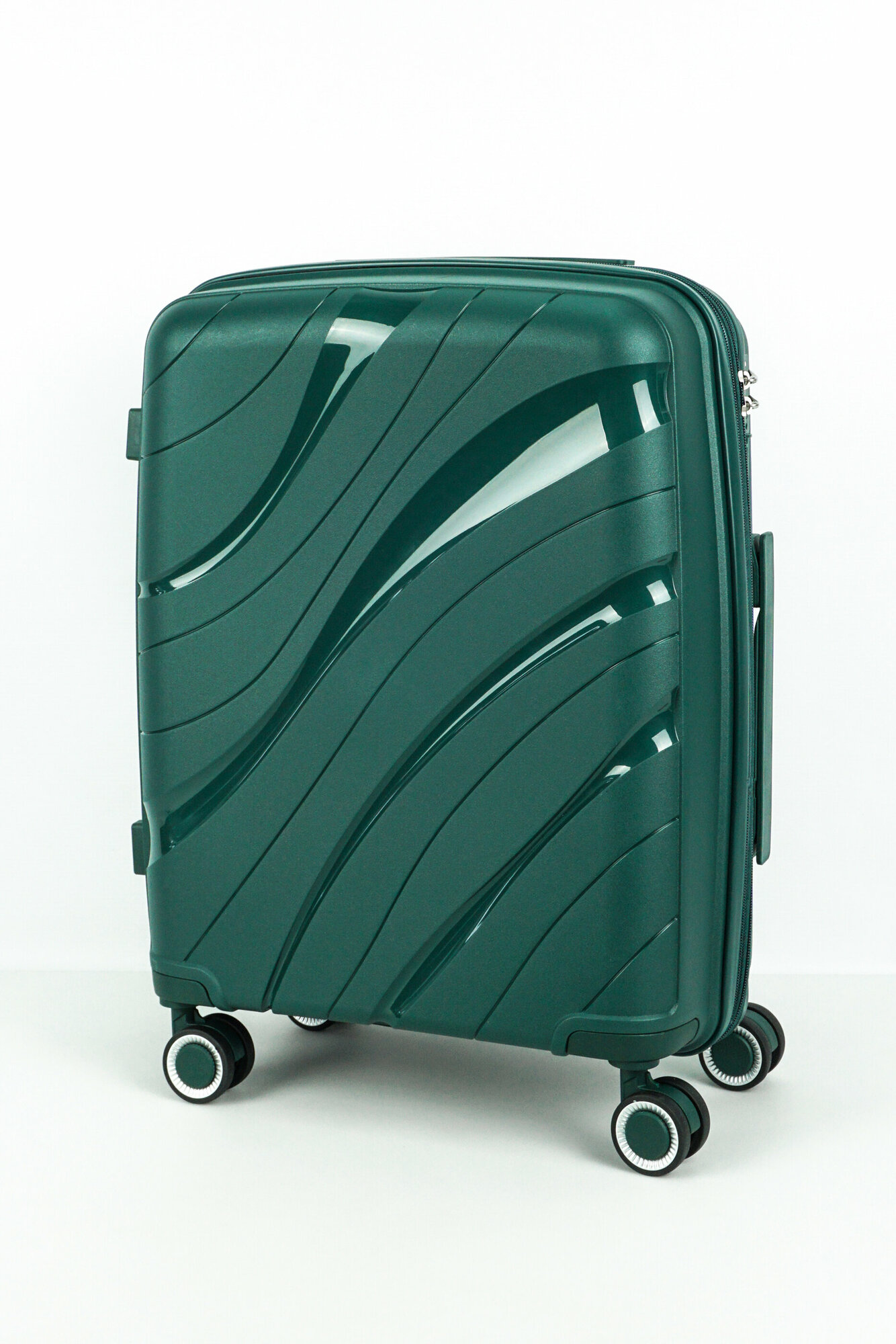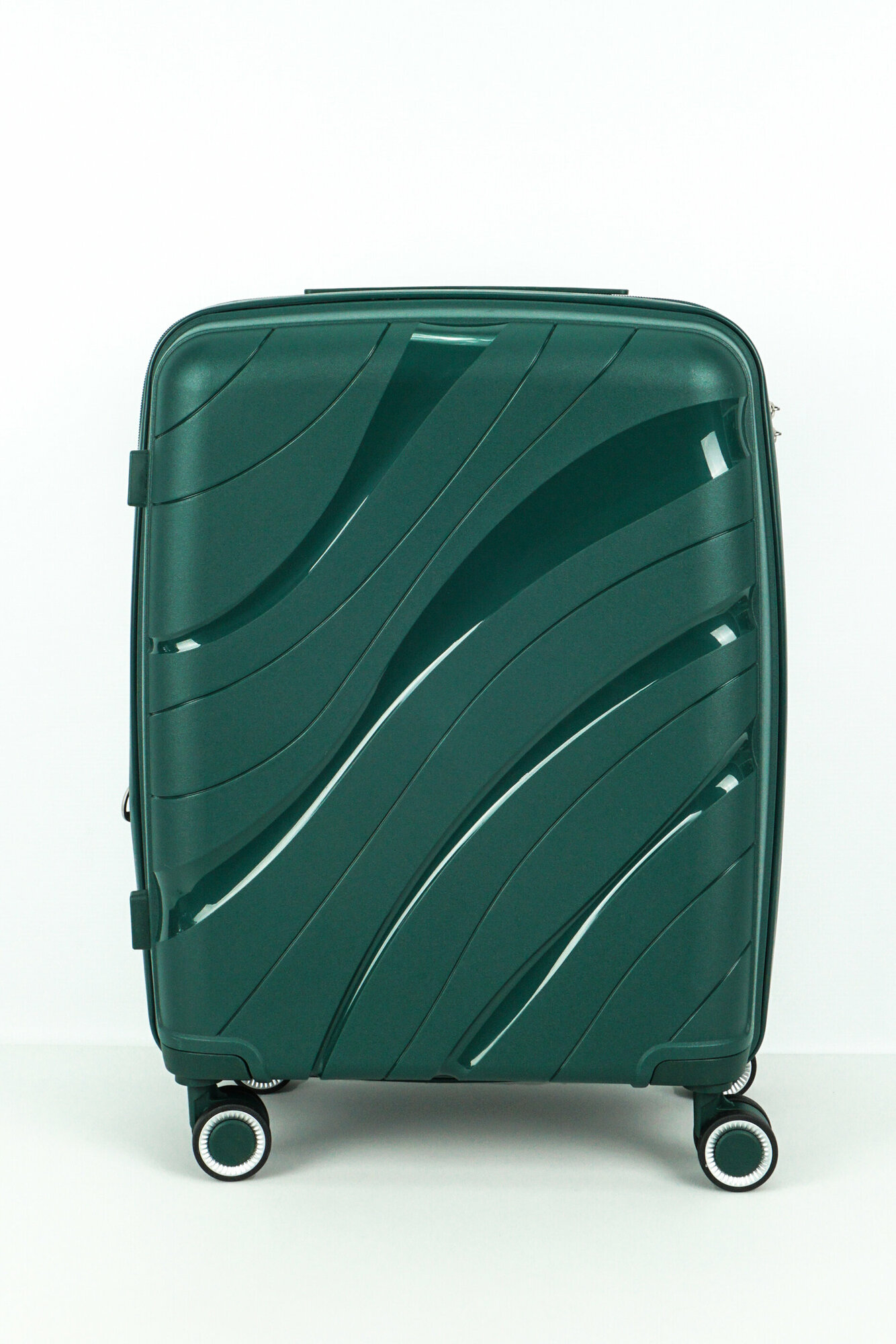 Купить Чемодан Sweetbags маленький (ручная кладь) из полипропилена с расширением на 4-х колесах с TSA замком (волны) темно-зеленый S